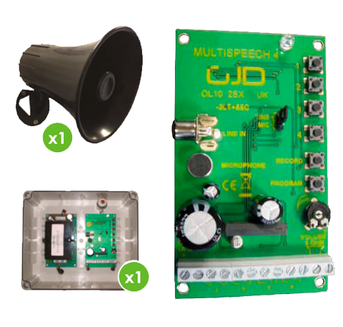 Le kit d'énonciateur vocal de GJD diffuse l'enregistrement souhaité lorsqu'un événement donné se produit.